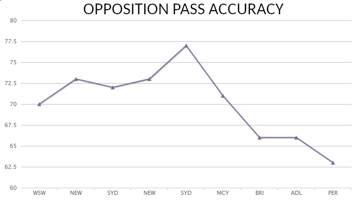 Hence you can see from that graph, looking at the passing success rates of the teams that they’ve played so far, a large dollop of encouragement. They’re playing in the same style as always but are breaking things up and winning back possession with more regularity.