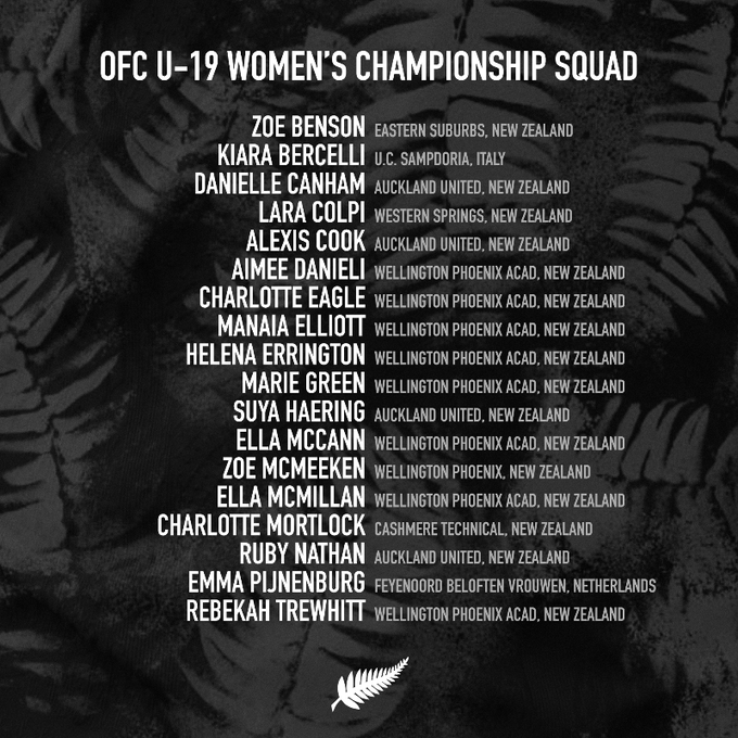 Milly Clegg is the big omission but clearly she’s got more important things going on in trying to make the Football Ferns World Cup squad. There’s also been a smaller squad picked for this current tournament hence a couple others had to drop out. Goalkeeper Charlotte Eagle was initially named in the U17WC squad but got injured and was replaced by Sophie Campbell (who is still young enough for the next U17 wave).