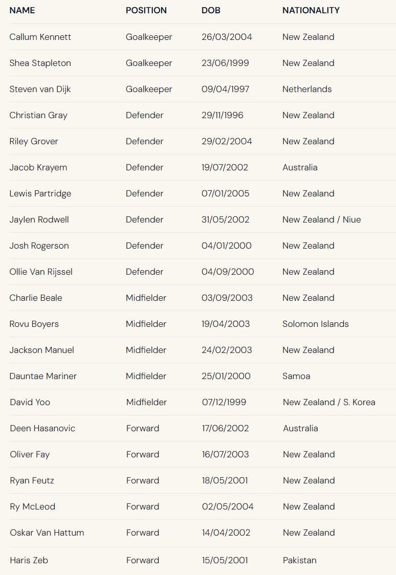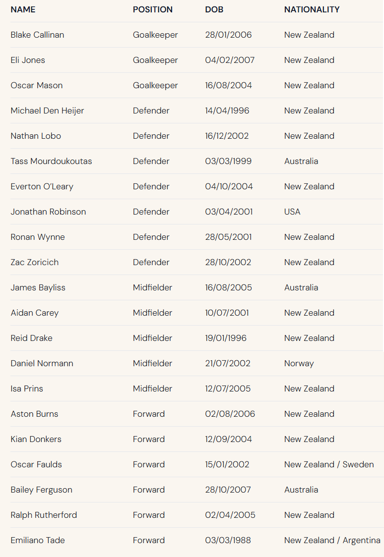 South Island United had basically already announced their whole squad. Yesterday they added Christian ‘El Profesor’ Gray to the list because why not, he’s a man for the big occasion after all. Aussie forward Deen Hasanovic is also in amongst. So that’s them sorted, here are the full squad lists for the two kiwi clubs...
