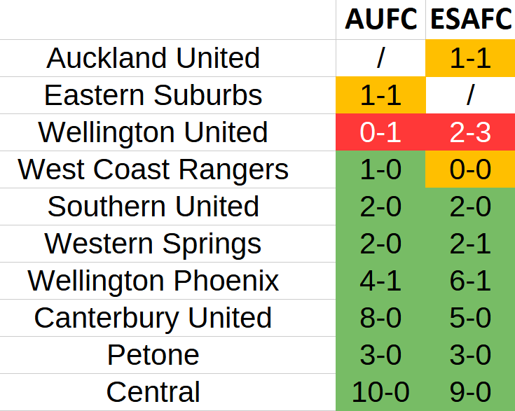 These two drew 1-1 when they faced each other midseason, that was a Suburbs home game although they played it on the Fencibles turf since it was a midweeker that needed proper floodlights. Ruby Nathan scored after 49 minutes to give ESAFC the lead but Ava Pritchard snatched an 88th minute equaliser. Otherwise, the results throughout the season have been extremely similar from both sides with the only major difference being that Auckland Utd found a winner against West Coast Rangers (from a dodgy 77th min penalty) whereas Eastern Subs did not (they went very close... but also didn’t need to, with a draw still working out well for them – even though they played more than half the game against ten women).