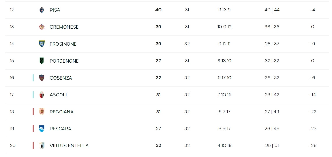 Another relegation battle. There are a few of those... although it looks like Liberato Cacace’s STVV have pretty much done enough to remain in the Belgian top flight, which is nice. Niko Kirwan’s Reggiana only got promoted last season so they’re out to avoid yo-yo status. Kirwan is in and out a bit at right back but has still featured in 22 of 32 games (starting 14), though eight games without a win as them in big trouble right now. Gotta get out of the bottom three which are automatic relegation spots. Then gotta try get above the next two spots as well which go into playoffs for retained Serie B status. It’s all super close there with six games remaining, although 15th place is getting a bit distant. Just gotta get those precious, precious results.
