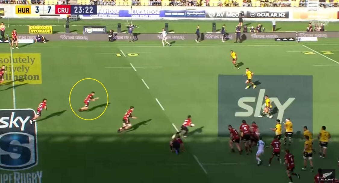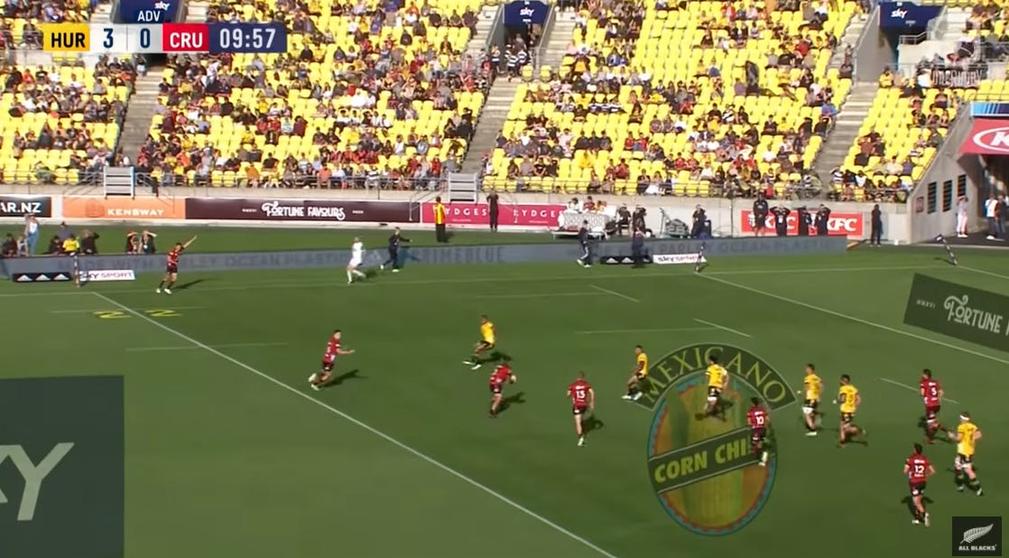 If you want to know what the latest trend or scheme in rugby is, watch Crusaders games. These trends are quickly scattered around Aotearoa (perhaps sent down from All Blacks), however Crusaders are always at the front of the pack. As an Aucklander, I love watching Crusaders play as I get that insight of what’s happening in rugby right now. Unrelated notes from that game…
