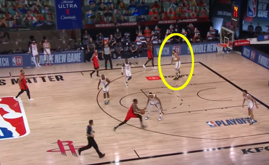 But while it’s been frustrating for OKC, watching the Houston Rockets do their thing has been seriously enlightening. When they traded away Clint Capela midseason it was hard to know what to think of that. PJ Tucker is now their starting five, a bloke who stands at 6’5. Jeff Green is his backup standing at 6’8. The seven footer Steven Adams has the reach on both those dudes and we’re seeing that in his rebound numbers... but coming back the other way it’s a different story. Tucker is a knockdown shooter from the corner three position which means that OKC have their best rim protector having to stand out here half the time...
