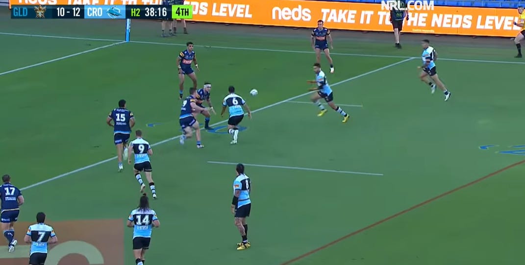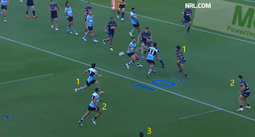 Also noteworthy is the gap between Johnson and Nikora. This gives Johnson space to skip to the outside, while also giving Nikora space to pick his line to run.