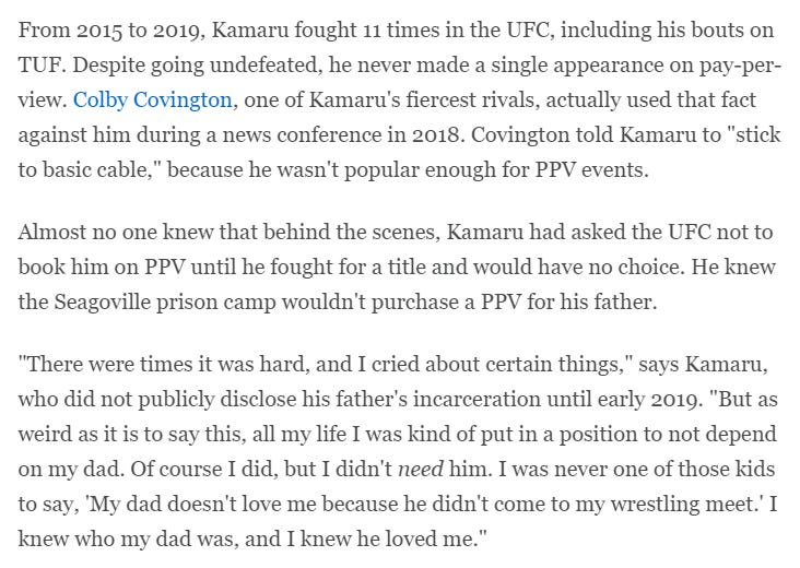 UFC 251 is headlined by Kamaru Usman vs Jorge Masvidal and that’s a crazy story in itself. I came across this cool note about Usman: