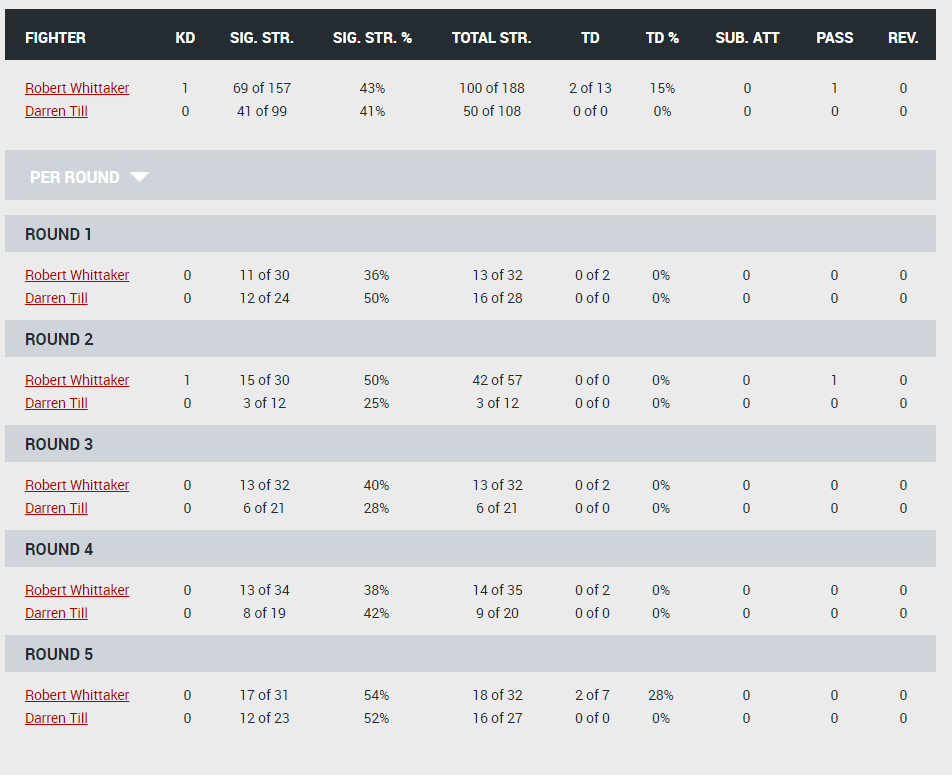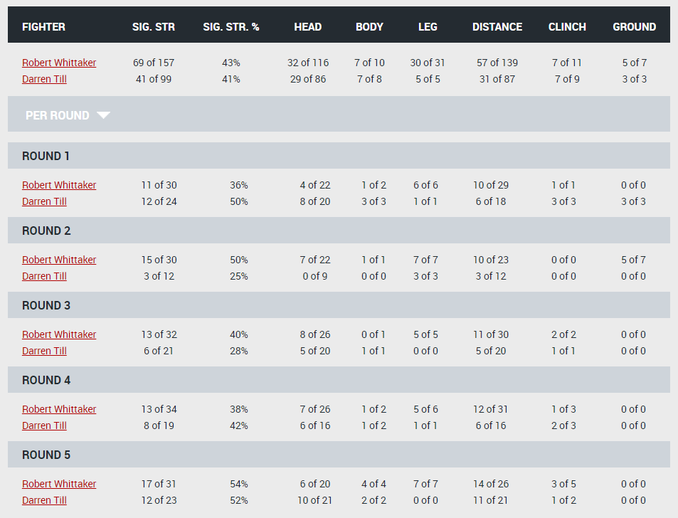 Here’s the stat wrap (if you don’t follow UFC, try figure out the stats - understanding stats is crucial in building a better understanding sports):