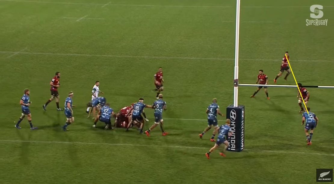 First Jordan is slightly hidden as he sweeps around the back - highly likely it’s intentional as Otere Black can’t suss out the primary threat: