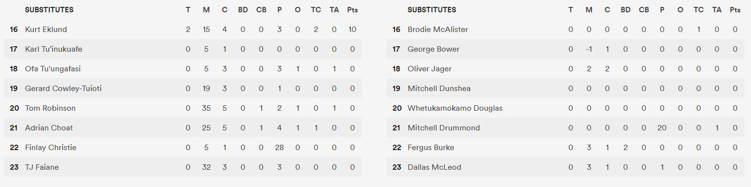 I liked Adrian Choat off the bench as well, TJ Faiane had a great comeback and I love his all-round skill, Gerard Cowley-Tuioti ran direct to generate momentum. Kurt Eklund made a hefty impact himself, yet Eklund and fellow second wave sub Tu’ungafasi were the blokes who conceded super unnecessary penalties at key times. Don’t suplex a bloke after the whistle, don’t spear into a bloke after the whistle. Don’t do either before the whistle when the game is on the line.