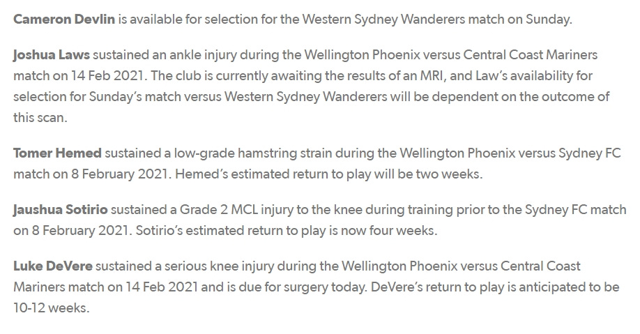 Luke DeVere out for up to three months. Tomer Hemed with another week or two on top of his initial diagnosis. Josh Laws requiring scans doesn’t sound too promising with three games coming up in eight days starting on Sunday. At least Cam Devlin is fit and healthy, he’s going to be an essential piece of the puzzle with his defensive work in midfield given how compromised that back four is going to look. Te Atawhai Hudson-Wihongi deserves a good run of games, fingers crossed he bosses the show. It’s going to be a terrifyingly inexperienced group with whoever partners him though.