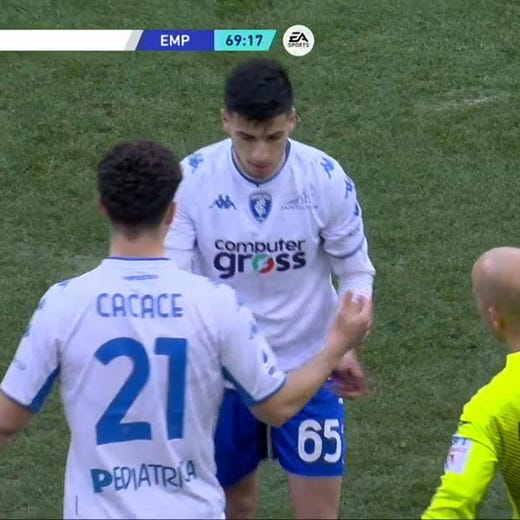 A momentous Aotearoa footballing occasion, friends: Liberato Cacace in there for his Empoli debut at the first time of asking, a week after signing for the club, thus becoming the very first kiwi footballer to play in the men’s Serie A division.