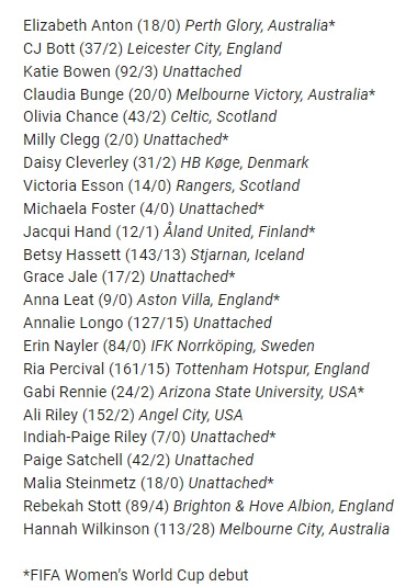 I wrote my squad predictions about six weeks ago and had assumed that Daisy Cleverley would only make it if Longo didn’t... but nope she’s in there. I was right about them not picking another specialist fullback though. 21/23 if you’re wondering. I also thought Barry might sneak in ahead of Anton based on previous selections but Anton must have trained the house down in camp, good to see.
