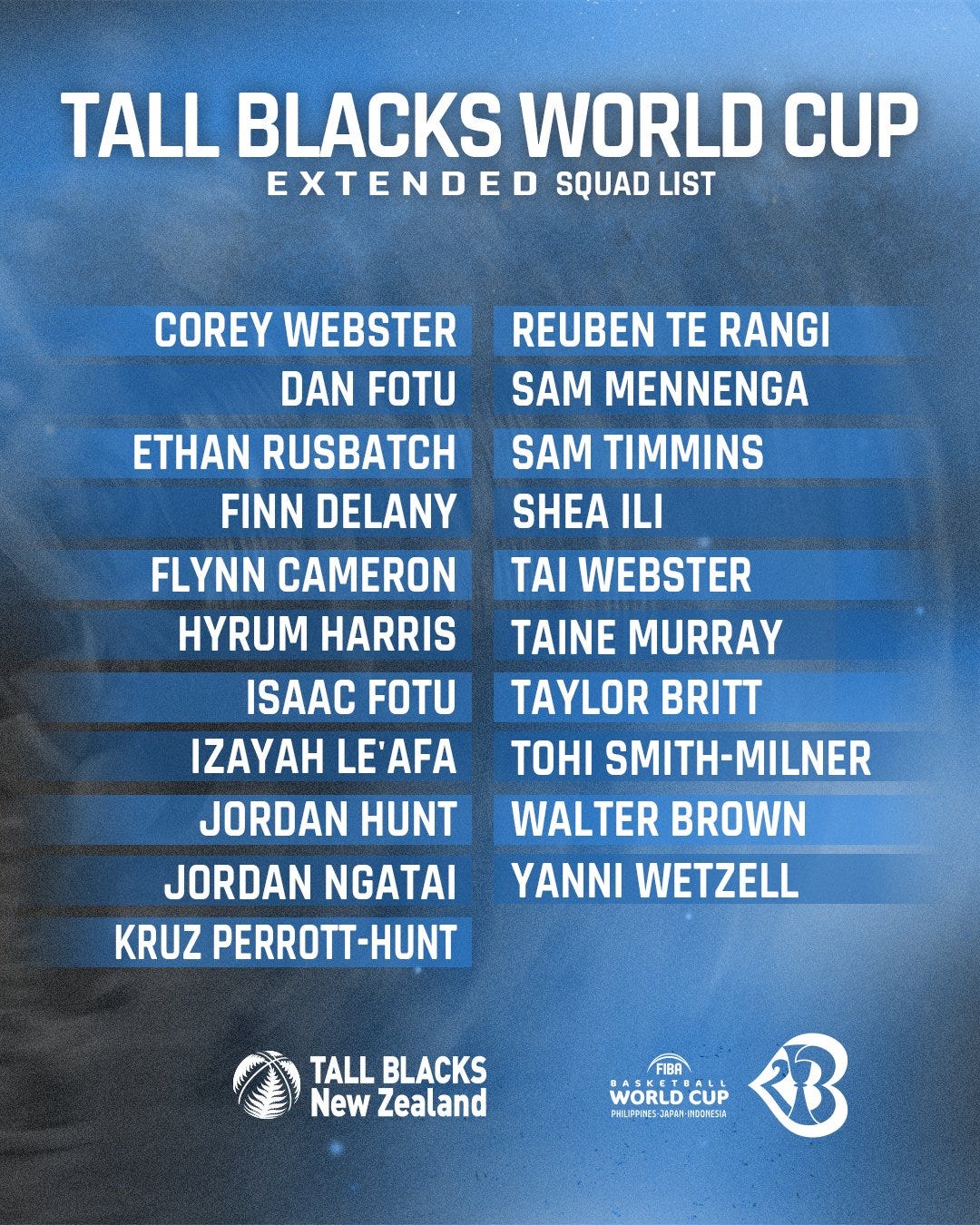 14/21 are currently playing NBL in Aotearoa, a couple of them specifically in order to build up reps ahead of the World Cup. Tyrell Harrison and Sam Waardenburg are the only guys with current Australian NBL contracts (excluding development players) not to be included. Two pairs of brothers have made it this far too.
