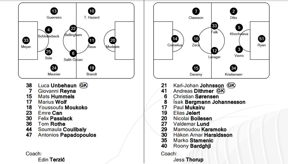 But then by that very same evening there he was on the list after all. Somehow asterisked as a B-List player despite seemingly not being eligible but one way or another he clearly did make it because he was an unused sub in the 3-0 loss away to Borussia Dortmund on Wednesday morning NZT. Proof in the pudding.