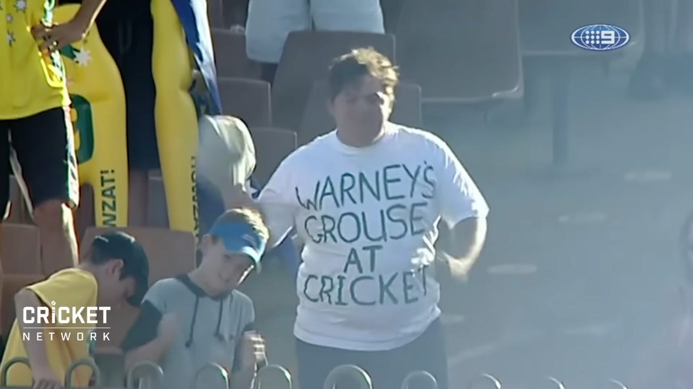 It ain’t all the bowling either. Warne’s highest ever score famously came against the Blackcaps. Caught Richardson, bowled Vettori for 99 in Perth in 2001. Legendary celebration from Rigor. Warne was always quick to remind people that cameras later showed it should have been called a no-ball. Then there’s the Warney’s Grouse At Cricket dude in the crowd. Many-a legendary instance stemming from that single delivery.