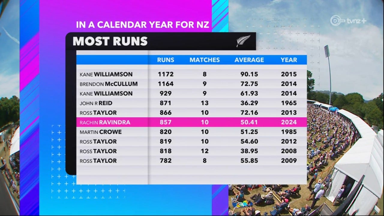 Rachin Ravindra: 0, 59, 4, 82, 39, 92, 10, 12, 134, 39*, 65, 9, 5, 4