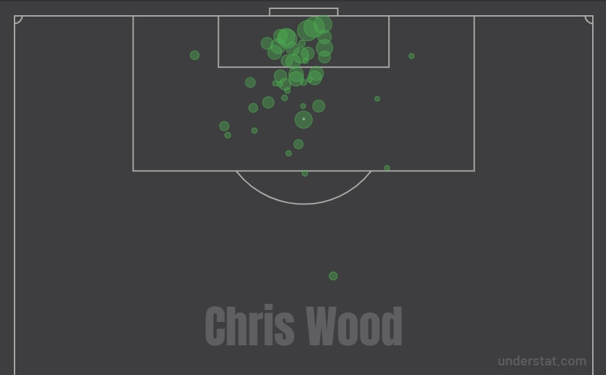 Chris Wood feeds on service. He’s not Mo Salah out there gliding past defenders and creating his own chances. He scores most efficiently (as most strikers do) the closer he is to the goal. A six-yard box merchant. His Premier League career shows that the more shots he takes the more goals he scores but a guy like him, when he’s not getting those shots he’s gonna look pretty messy.