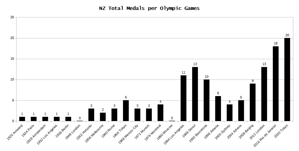Of the 20 medals that we got in 2021, five of them came from the rowing team. Well, we’re now up to three from that lot with the single scullers still to follow. The women’s lightweight double sculls are into their final as well. There were also three medals from the canoeing, all involving Lisa Carrington. Those events haven’t happened yet.