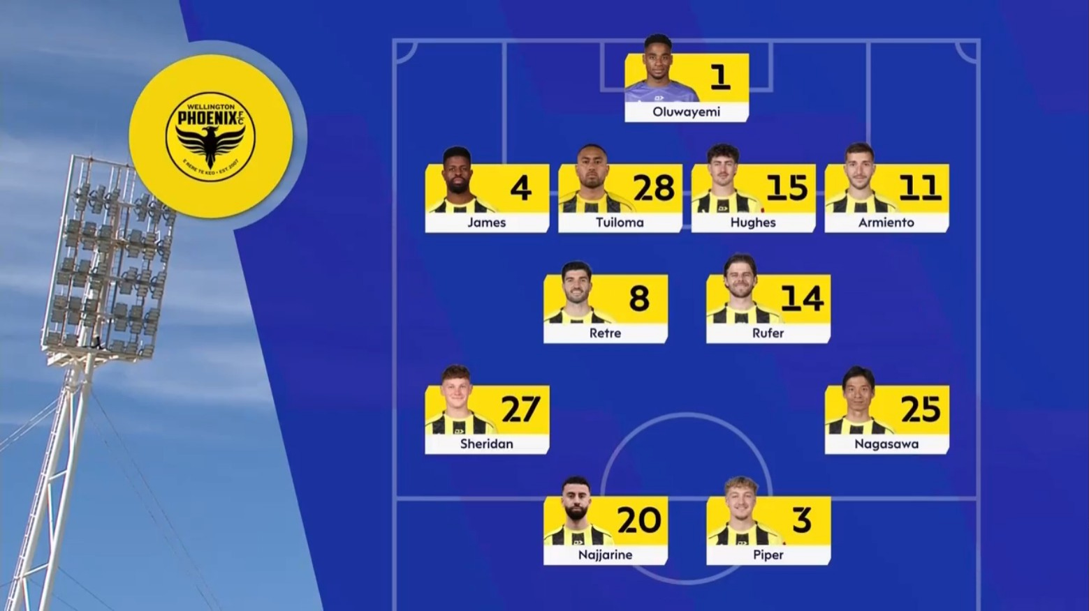 Oluwayemi; Sheridan, Tuiloma, Hughes, Kelly-Heald; Rufer, Retre; Armiento, Nagasawa, Najjarine; Piper