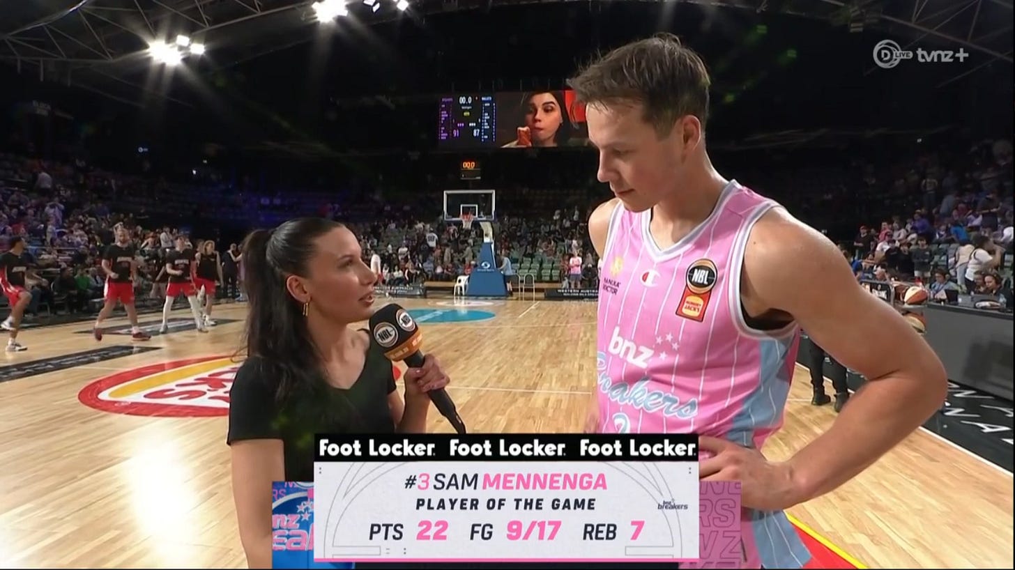 So on the one hand, we had a really encouraging team performance, including from the rookie head coach, straight after a preseason in which they’d lost every outing. Also got significant roles for the only two NZers on the main roster – and that could lead to some updated consideration about what Mennenga’s role will be when Freddie Gillespie returns from suspension (they very well may not have won this with Gillespie’s profile at the five instead of Mennenga’s).