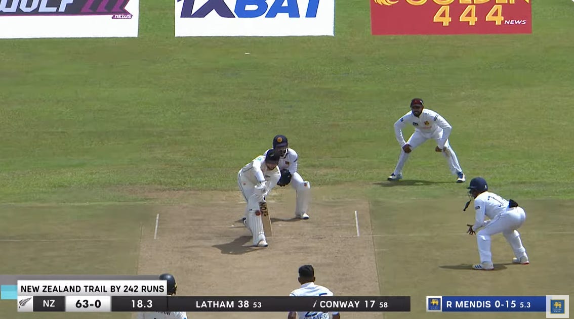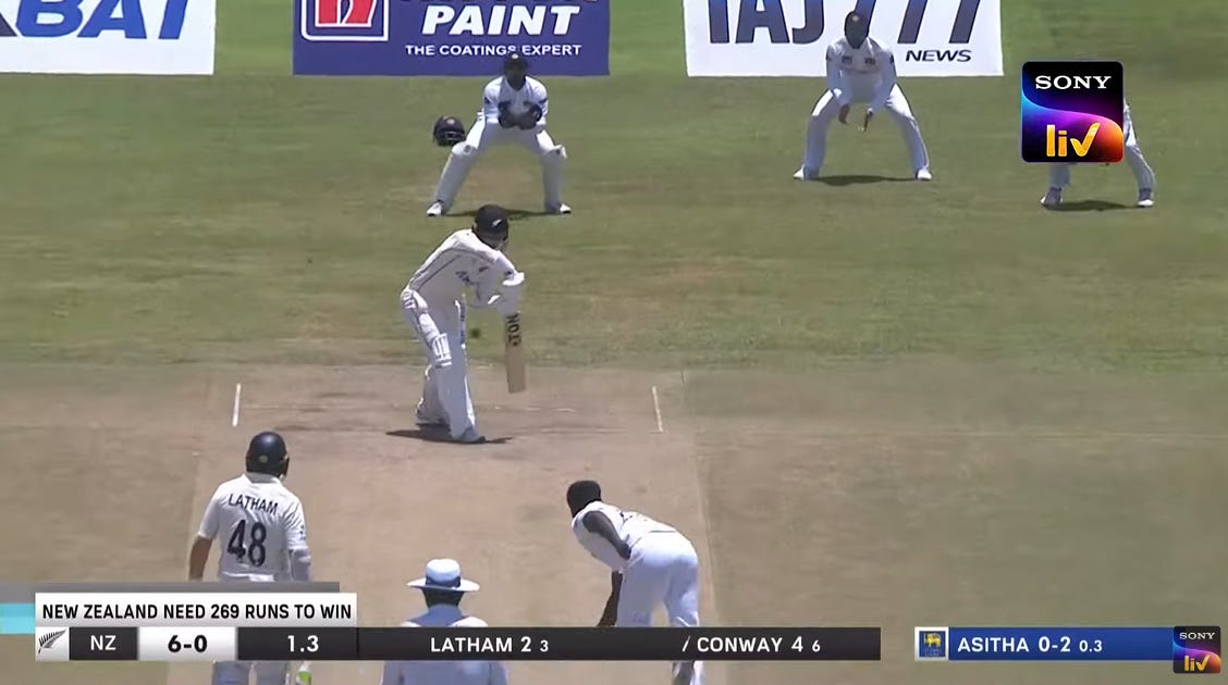 Conway had scores of 17 and 4 in the Test vs Sri Lanka. First dismissal was an lbw and then Conway did what must now be considered 'the Conway' where he dangles his bat outside off-stump. No shame in being lbw in these conditions but there is the quirky technical element of Conway's head being either side of the ball in both dismissals and they seem like low-confidence dismissals.