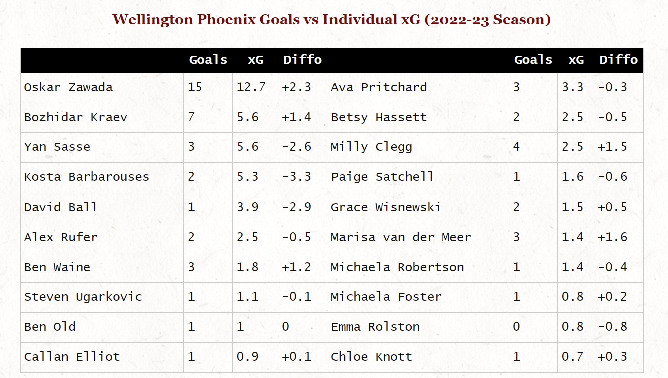 No major surprises with that but it does show how deeply the bad finishing ran across both teams… with the exceptions of Oskar Zawada and Milly Clegg as well as Marisa van der Meer’s set piece targetting. Bozhidar Kraev did most of his work at the start then tailed off. Grace Wisnewski did score a couple of nice strikes.