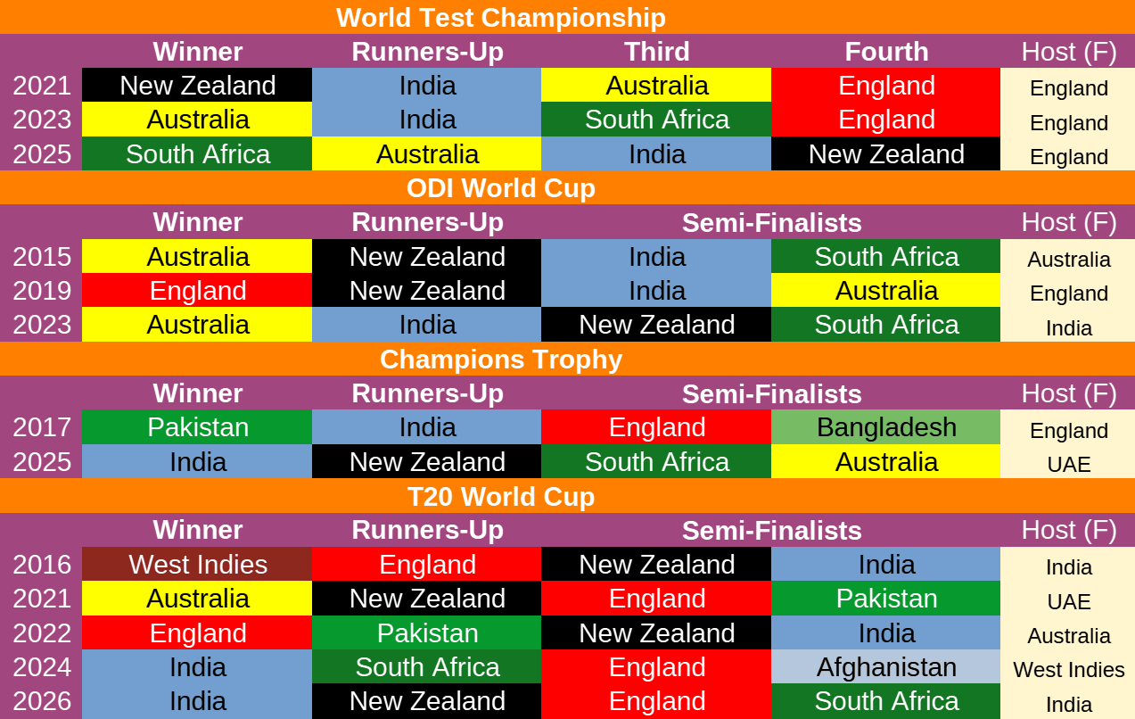 Here’s an update of last Thursday’s graphic of all the ICC tournament results since 2015 (now with added grand final hosts!)...